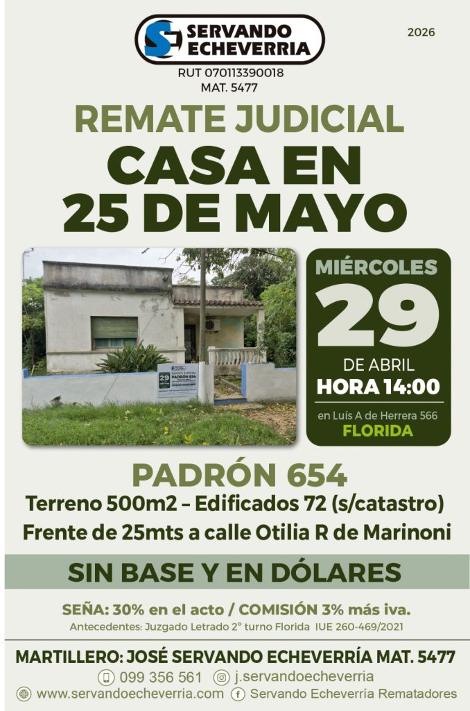 Martillero: JOSE SERVANDO ECHEVERRIA / Celular 099 356 561 / @j.servandoecheverria.com